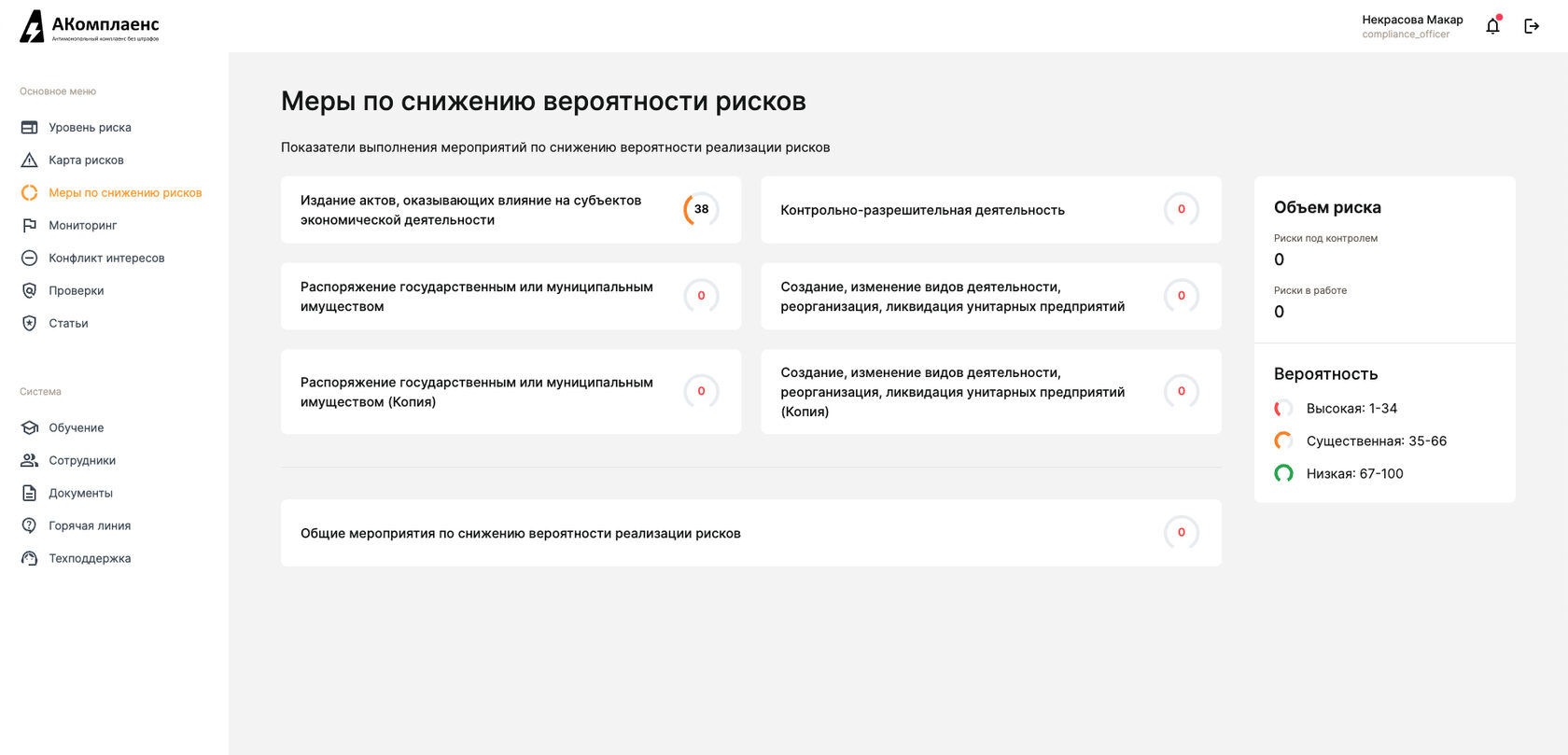 Сервис АКомплаенс помогает автоматизировать рутинные процессы по выявлению и оценке рисков, оценить уровень риска и систематизировать проверки событий риска.